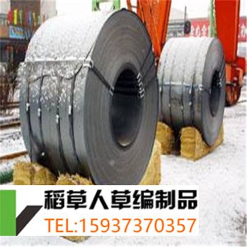 本鱼台草支垫新型公开了一种用于钢卷运输的凹型草支垫支撑结构,具有支撑效果好和钢卷位置固定的特点。用于钢卷运输的凹型草支垫支撑结构,包括钢卷和至少两个并列放置的凹型草支垫,还包括两条定位绳,设置在凹形草支垫两端的定位卡具和至少一条支撑绳;所述支撑绳的一端沿所述凹形草支垫外侧依次穿过所有定位卡具并与支撑绳的另一端相连;所述钢卷置于并列放置的凹形草支垫的凹形槽内;所述两条定位绳通过所述钢卷中间的通道分别与所述凹型草支垫两端对应的固定装置连接。由于设置了至少两个凹形草支垫和定位卡具及支撑绳,从而较好的限制了凹形草支垫的塌陷变形。此外,定位绳可以使钢卷在运输过程中的位置得到较好的固定。