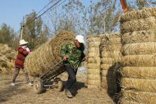 水稻收割之后,新乡市原阳县广大稻农把稻草收集、整理起来,利用空闲时间编织加工成经济草编制品、绿色环保的草袋、草绳、草苫等草制品,销往山东寿光、苍山等蔬菜种植产区及周边一些城市、企业,昔日被作为柴火烧的稻草成为当地稻农增收的“香饽饽”。郯城县农商行因势利导,加大信贷资金扶持,推进稻草加工业的发展,据介绍,目前,该县草帘、草绳加工机械已达4000余台,从业人员达6000余人,年可累计加工、销售草袋、草苫、草绳等草制品400多万件(套),创收达2000多万元。
