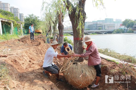 在荆河东岸木栈道拆除修复施工现场,施工人员正在进行河岸的苗木移植工程。据施工现场负责人介绍,将严格按照施工设计方案,对原损坏的栈道进行拆除清理,加固东岸的挡土墙并在岸边安装栏杆,在河岸上新建一条宽3米的人行道,先修建路基,然后铺设人行道路面。工程竣工后将从根本上解决栈道损坏以来对市民造成的安全隐患。
