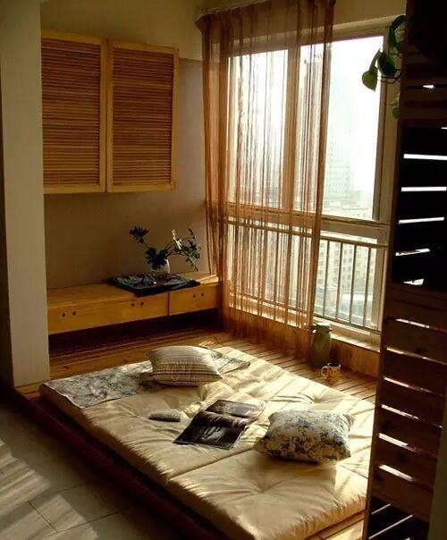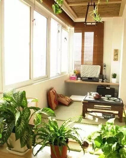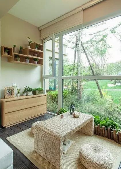 榻榻米风格,是很多室内阳台的最爱,可坐可躺,关键是始终沐浴在阳光下。