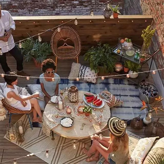 天气好的时候,把折叠桌椅搬出来。摆上柔软的靠垫、带上舒服的毯子,在地上铺一小块地毯,几分钟之内文艺的调调就轻松制造出来。