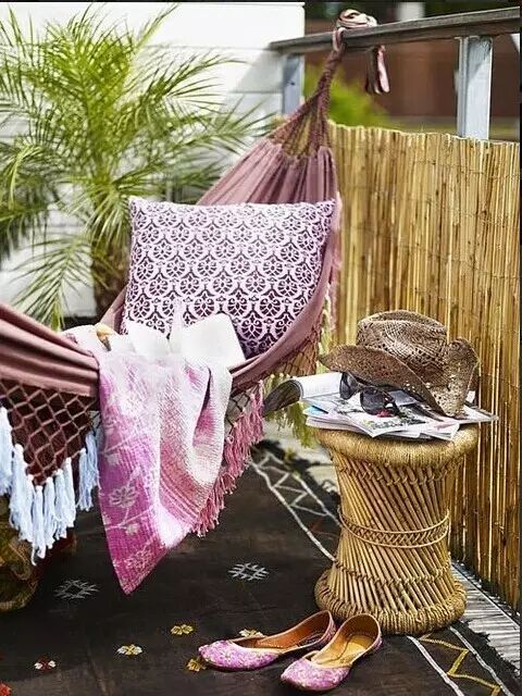 只要一件很有风格的东西,就能把“腔调”做足。比如这款吊床,就是浓浓的东南亚风。地道一些,再搭配一棵散尾葵、一个竹篱笆和一个藤编的凳子,就能沐浴在“巴厘岛”的阳光下。