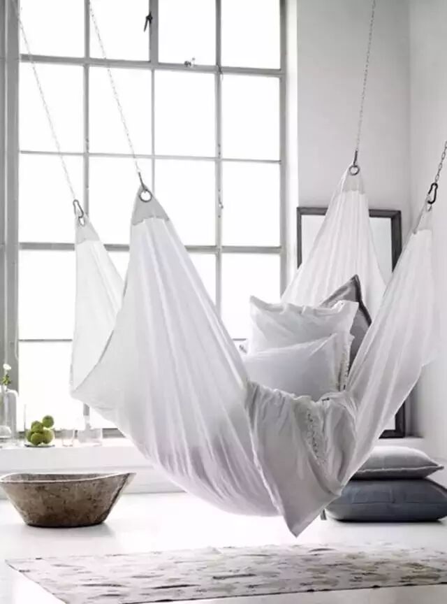 也可以把窗前的家具都移开,搭一个吊床来享受慵懒的阳光。