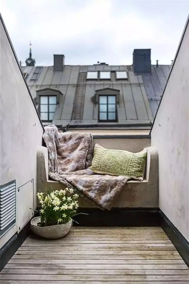 如果家里的阳台不是那么大,那么学会做减法很重要。去掉杂物、去掉多余的摆设,只要一个主题,一种风格,甚至只有一把舒服的椅子,就会很有型。