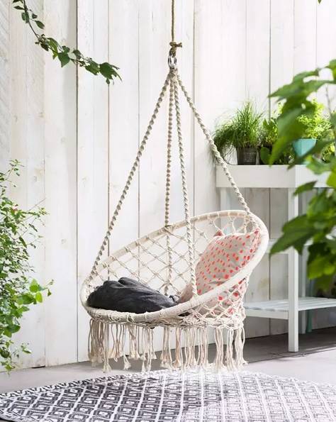 只一个吊篮和一个坐垫,像是阳台上的断舍离,简单到极致。